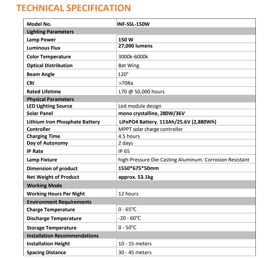 View more about INFINITY INF-SSL-150W JKR EMAL SPEC ALL IN ONE STREET LIGHT 27000LM 3000K-6000K CRI70 IP65 on main site