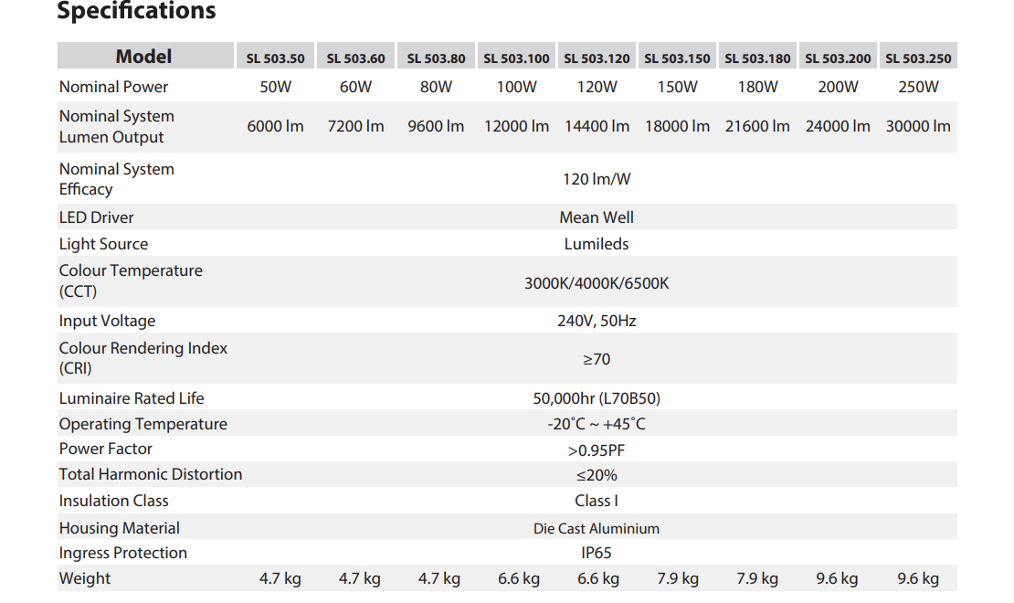 View more about SJLITE SL503 MARS SERIES LED STREETLIGHT 240V 50,000HRS IP65 CRI70 [50W/60W/80W/100W/120W/150W/180W/200W/250W] [6000LM/7200LM/9600LM/12000LM/14400LM/18000LM/21600LM/24000LM/30000LM] [3000K/4000K/6500K] on main site