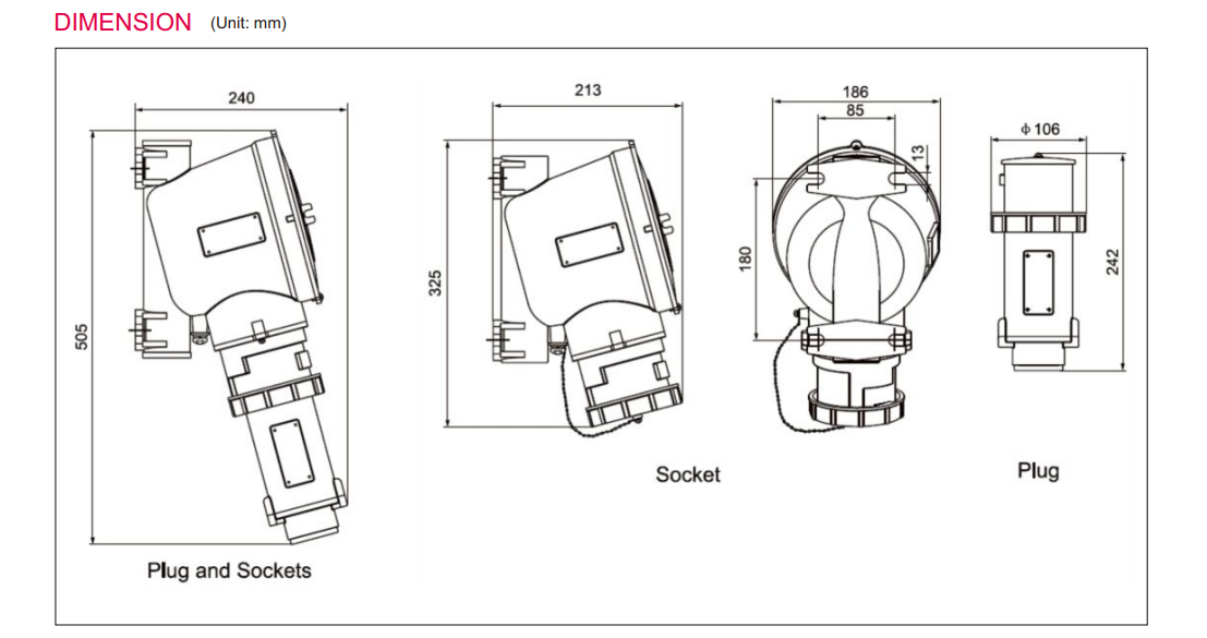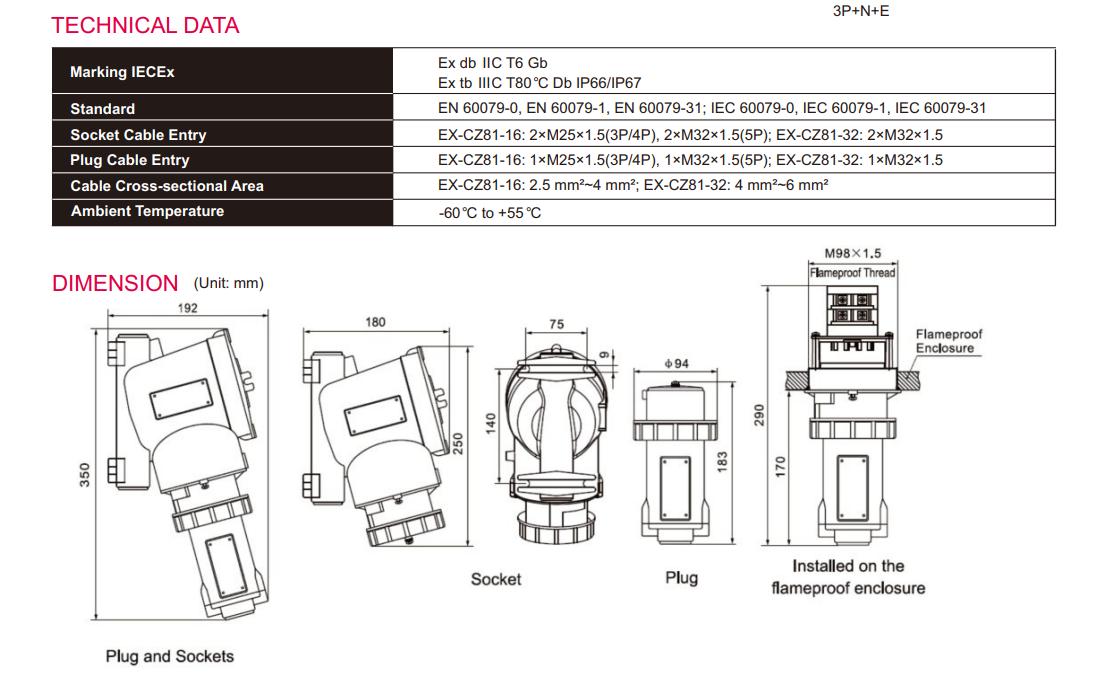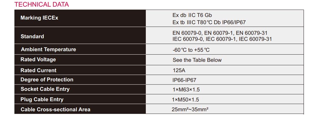 Built with a robust industrial-grade enclosure and rated IP66-67, the EX-CZ81 series offers excellent resistance to water ingress, dust penetration, and harsh environmental conditions. Available in multiple current ratings (16A, 32A, 63A, and 125A), it supports a wide range of heavy-duty industrial power applications.