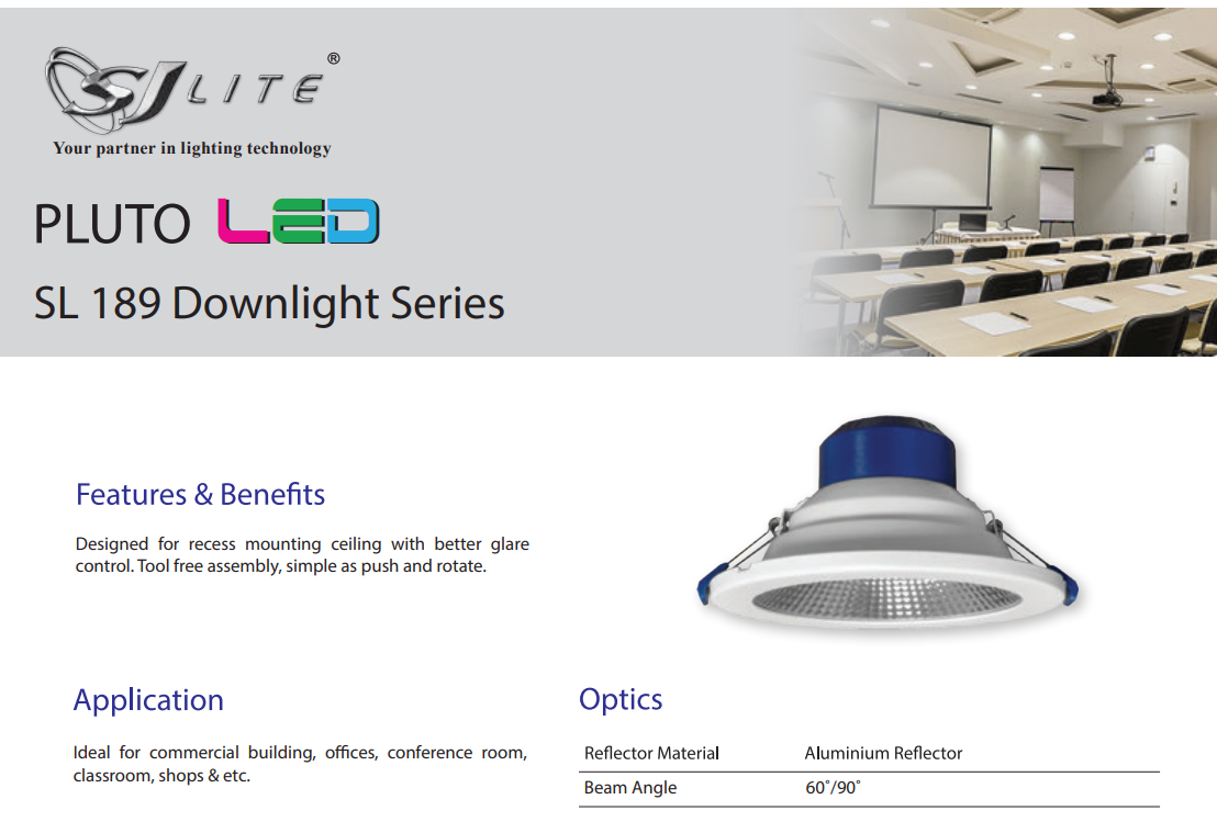 • Product Name: SJLITE SL189 PLUTO SERIES LED RECESSED DOWNLIGHT
