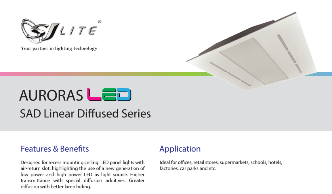 View more about SJLITE SAD AURORAS LED RECESSED LINEAR DIFFUSED PANEL LIGHT 240V IP20 CRI80 [23W/34W] [2250LM/3300LM] [3000K/4000K/6500K] [30,000HRS/50,000HRS] on main site