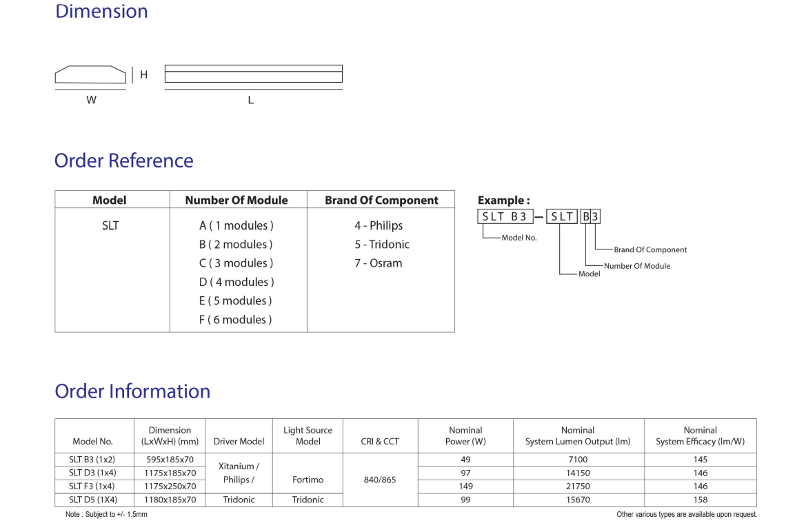 Built for long-term durability with a 50,000-hour lifespan, the SJLITE SLT Uranus Series is engineered to minimise maintenance, reduce energy consumption, and deliver consistent lighting performance. Designed in a sleek linear format, it provides wide light distribution suitable for large indoor spaces with high ceilings.