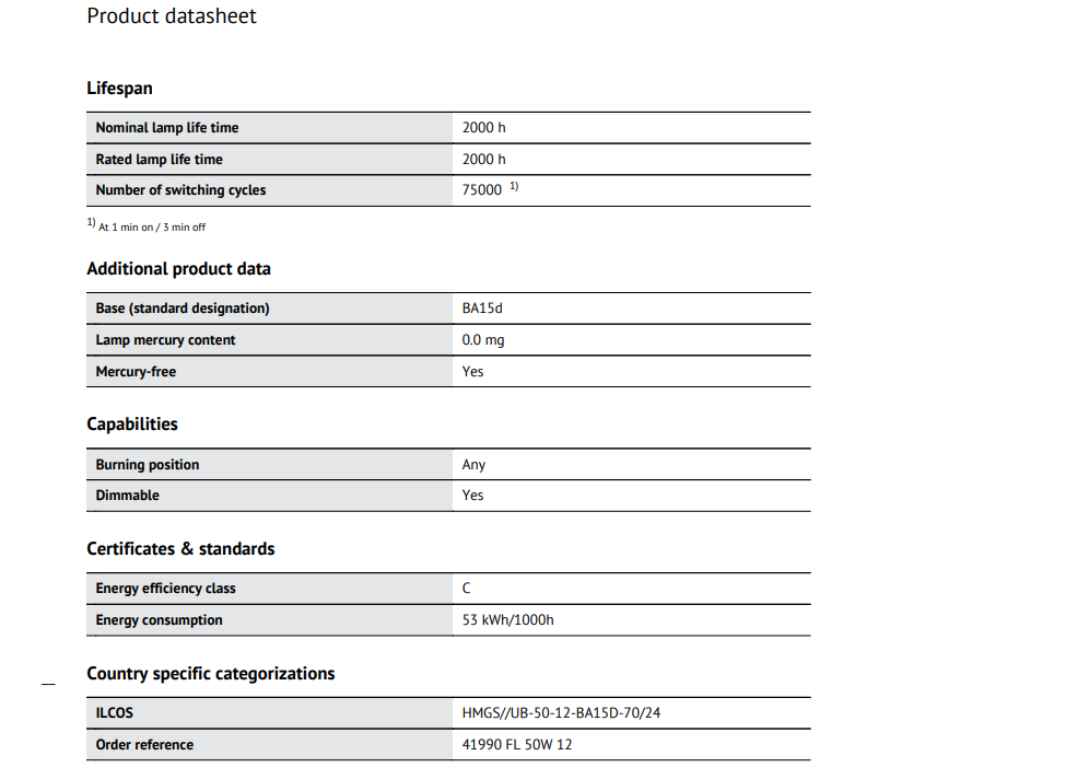 The OSRAM 41990 FL HALOSPOT HALOGEN BULB B15D 70 12V 50W 24D 3000K WARM WHITE CRI100 is the perfect choice for users who demand high performance, precision lighting, and outstanding colour fidelity. Upgrade your lighting setup with OSRAM’s proven quality and reliability.
