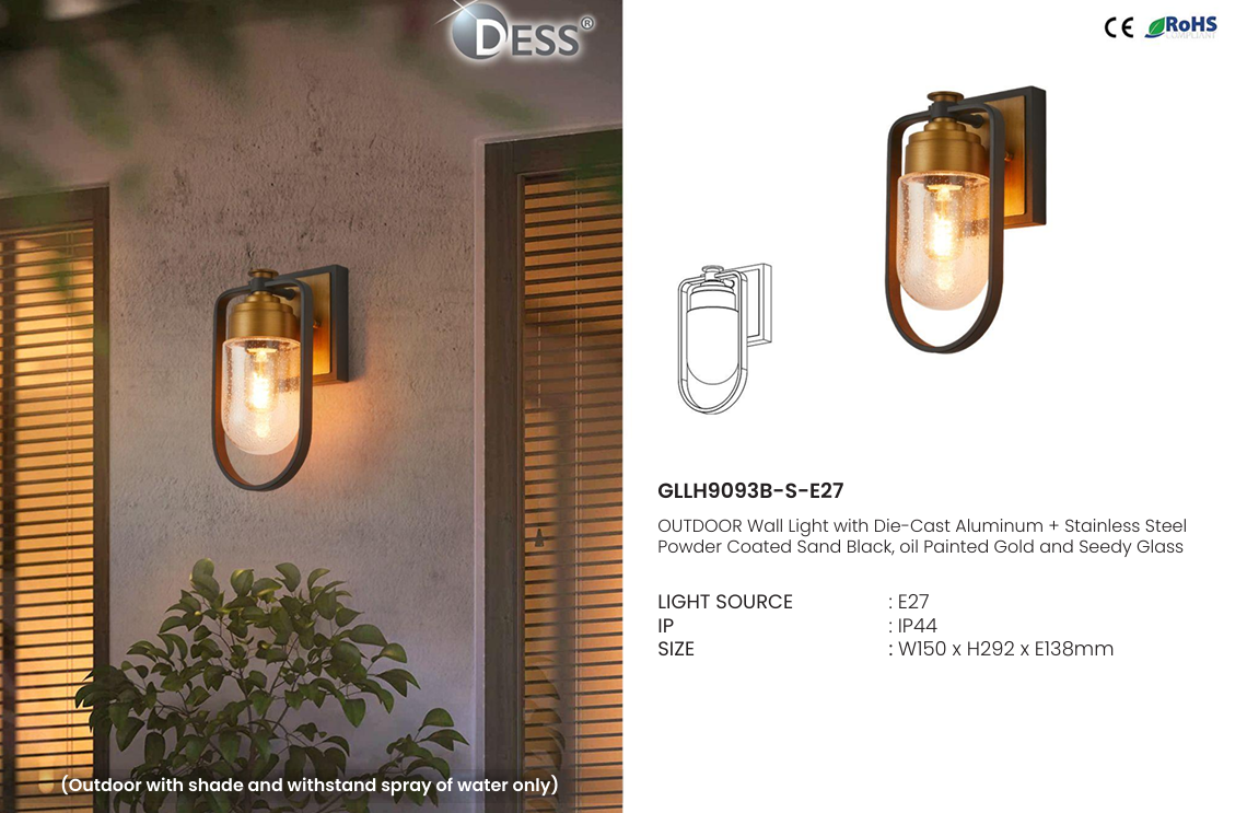 DESS GLLH9093B-S-E27 OUTDOOR WALL LIGHT FITTING IP44