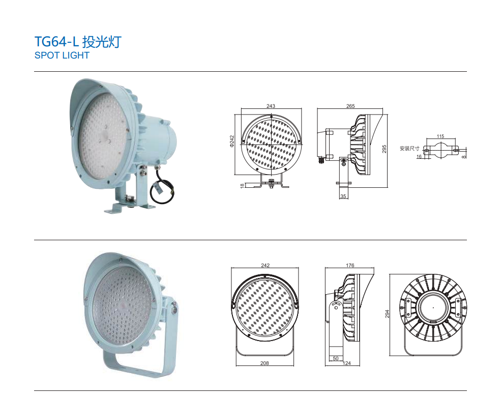 View more about JLUX TG64-L MARINE OFFSHORE LED SPOTLIGHT 265V IP67 CRI80 [75W/150W] [7,500LM/15,000LM] [3000K/4000K/6000K] on main site